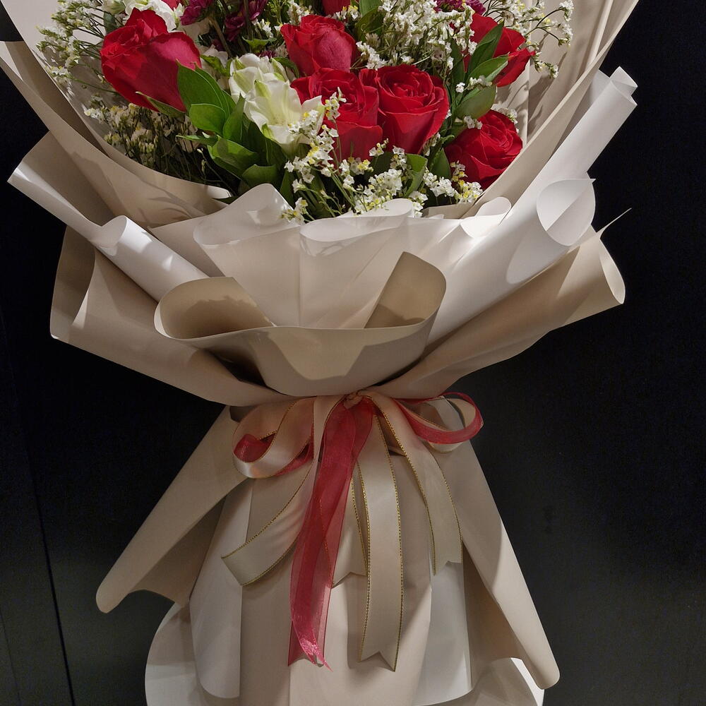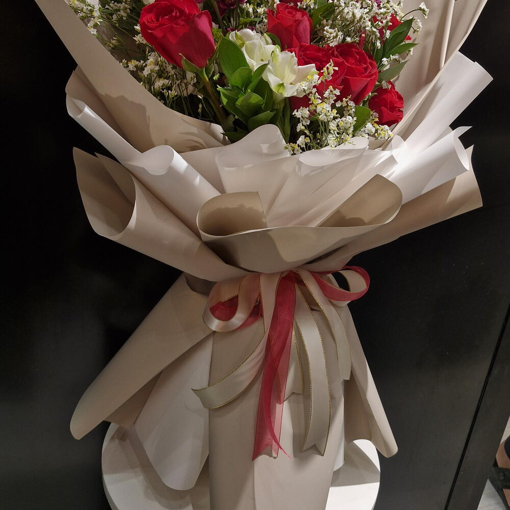 It was supposed to arrive at 3-3:30 but it was delayed until 5. I asked them to make it look fuller but they didn’t. Doesn’t look very similar to the photo