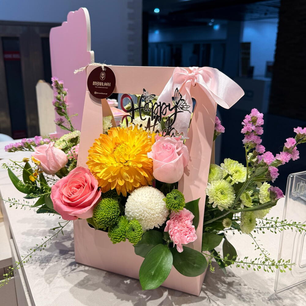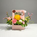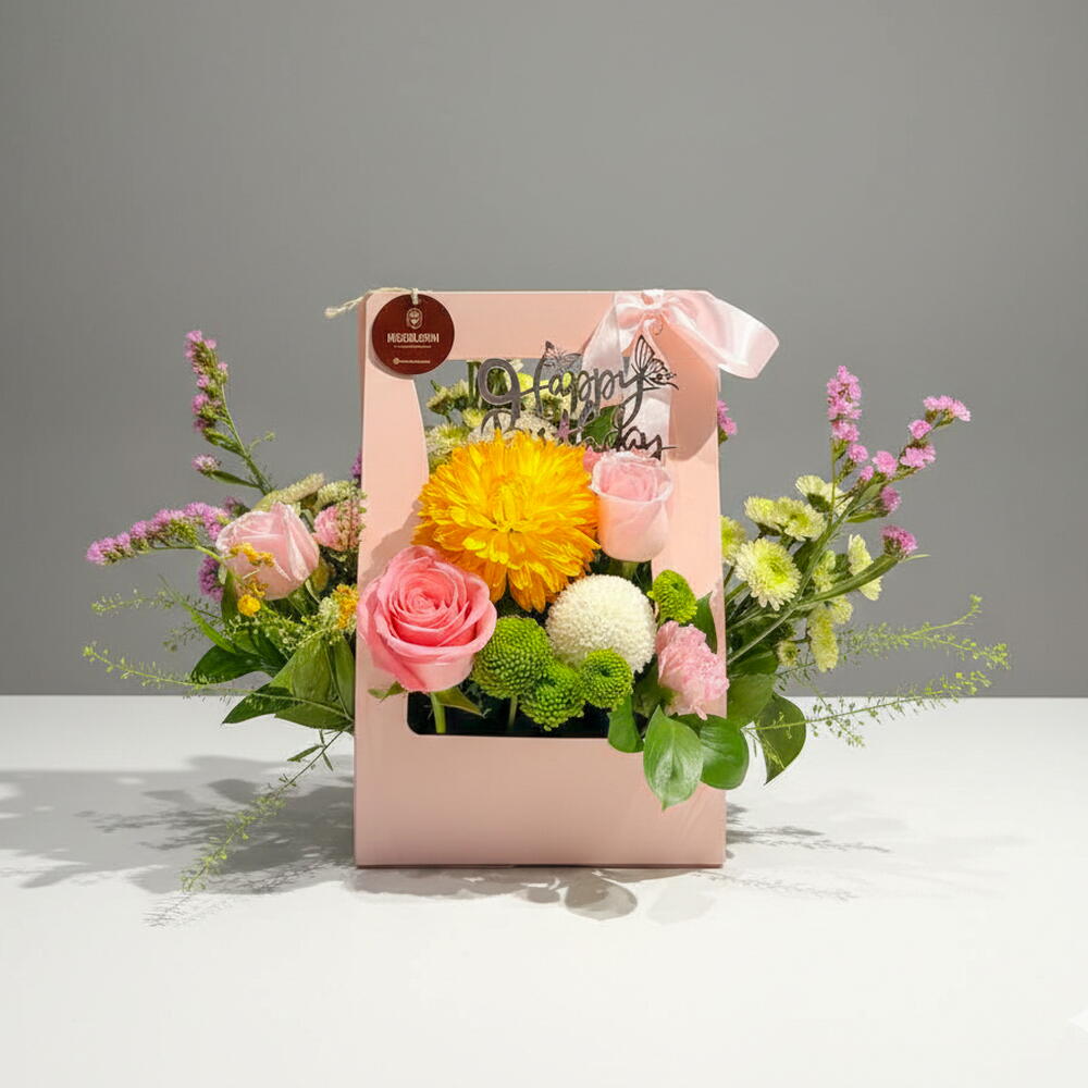 Experimente el refrescante encanto de nuestro surtido de Flores en Caja. Esta lujosa colección incluye 8 piezas de exuberantes ruscos, 4 delicados crisantemos y 4 fragantes lirios. Para añadir un toque romántico, incluye 3 atractivas rosas rojas y 4 rosas rosadas, acompañadas de 4 encantadores claveles. ¿Y el bis? 6 damas bailarinas en elegantes poses. Esta hermosa caja encantará a todos los amantes de las flores, convirtiéndola en el regalo perfecto para ocasiones especiales o simplemente para alegrarle el día a alguien.