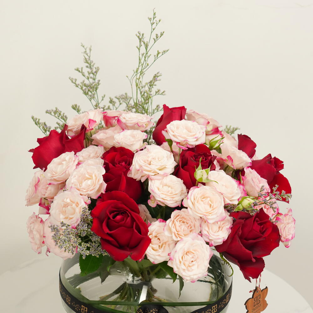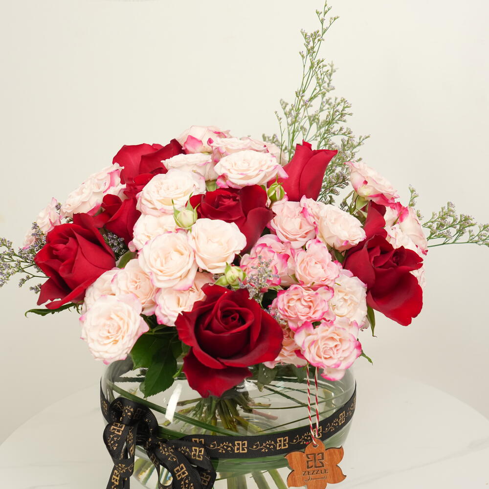 rose red - 10 ud. spray rose pink - 10 ud. limonium purple - 10 ud. bol 20 d - 1 ud.