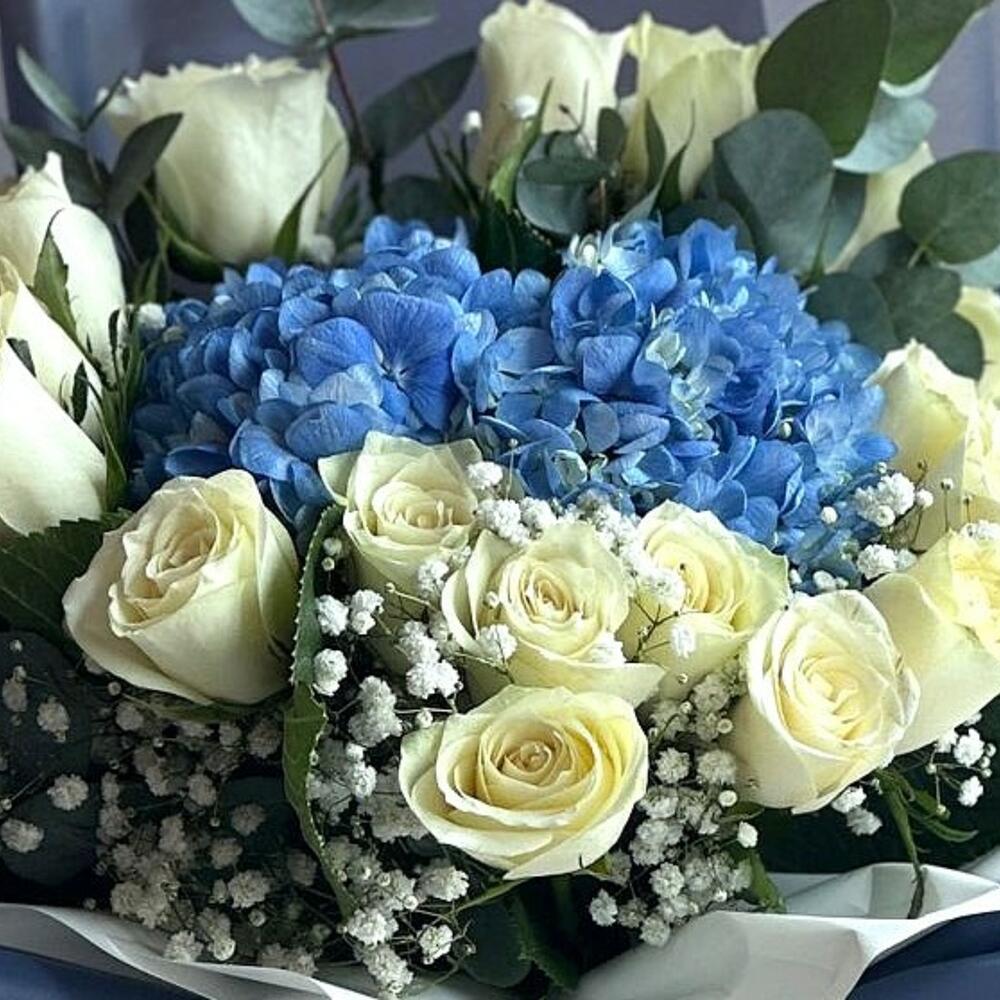 Rosas Blancas Hortensia Azul con Globo Mejor Papá