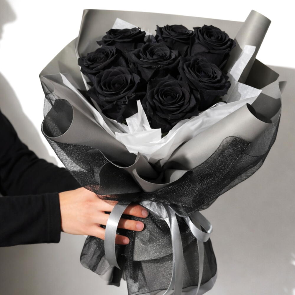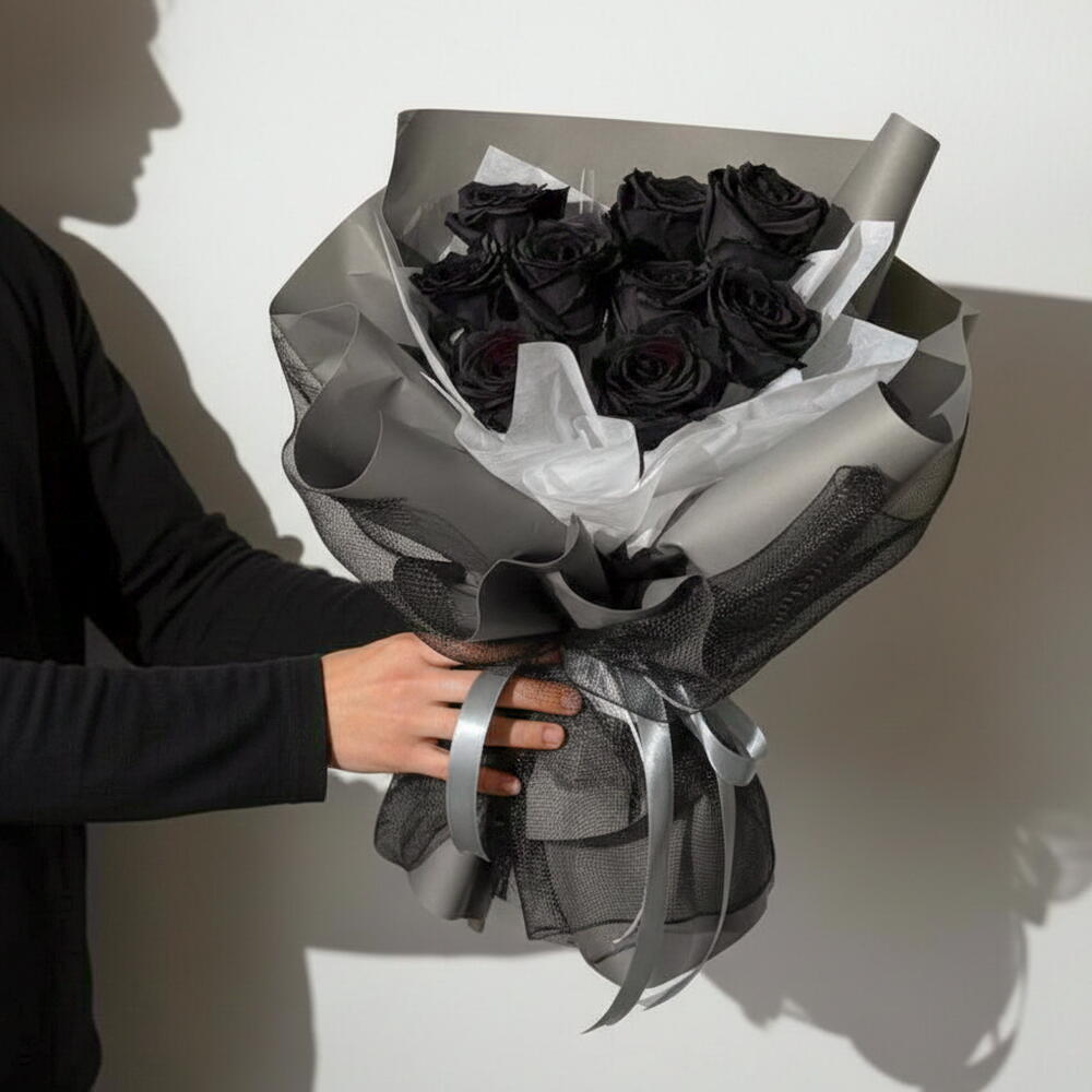 Un ramo llamativo de 11 rosas negras premium, envuelto en un estilo moderno y audaz para un aspecto seguro e impactante. Estas rosas han sido tratadas profesionalmente para un color intenso y duradero, lo que las convierte en perfectas para gestos audaces, regalos modernos, cumpleaños o sorpresas para él. Diseñado para quienes prefieren algo diferente—fuerte, con estilo e inolvidable.