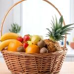 Basket - 1 ud. rose - 21 ud. pineapple - 1 ud. kiwi - 3 ud. strawberry - 5 ud. banana - 5 ud. naranja - 3 ud. empaque de ramos - 1 ud. manzana verde - 2 ud.