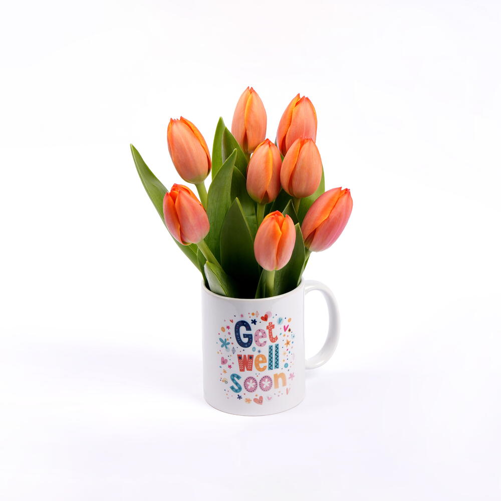 Taza 'Mejórate pronto' con tulipanes