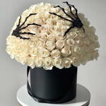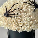 Inquietantemente hermosa, eternamente elegante. Ghosted Grace es una obra maestra etérea que fusiona la elegancia con un encanto misterioso. Ochenta y una rosas blancas puras, símbolos del amor eterno y la inocencia, florecen en una sombrerera negra de lujo, coronada con manos esqueléticas negras decorativas que descansan suavemente sobre ella, como si la belleza misma hubiera sido reclamada por las sombras. Esta creación monocromática encarna una sofisticación espeluznante, una declaración perfecta para la decoración de Halloween, regalos de lujo o para las almas románticas que adoran el lado oscuro de la belleza. Incluye: 101 rosas blancas premium 🤍 Sombrerera negra de lujo 🎩 Manos esqueléticas negras decorativas 🖤🦴 Detalles opcionales de telaraña negra o cinta oscura Perfecta para: Regalos de Halloween • Decoración gótica • Amantes del romance oscuro • Eventos y sesiones de fotos de lujo