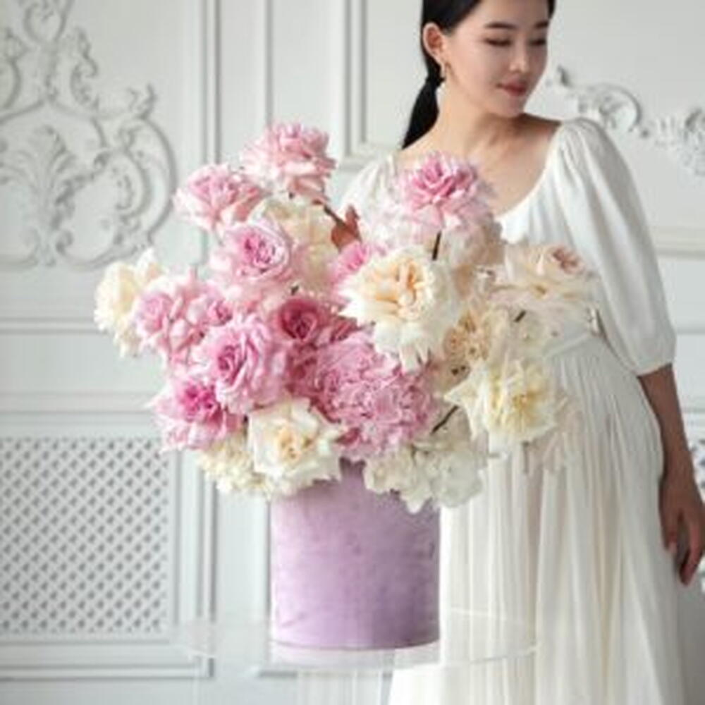 white hydrangea - 4 ud. hortensia rosa - 4 ud. rosas blancas de jardín - 15 ud. rosas de jardín rosadas - 20 ud.