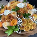 Ruscus - 7 ud. rosas mixtas - 15 ud. crisantemo dorado - 9 ud.