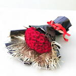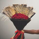 Audaz, elegante y dramáticamente romántico—este lujoso ramo está diseñado para causar una impresión poderosa. Con un racimo de exuberantes rosas rojas enmarcado por llamativas hojas de palma teñidas de oro metálico y envuelto en papel negro brillante con una cinta de raso roja, desprende sofisticación y pasión atemporal. Este ramo es perfecto para grandes gestos románticos, aniversarios o cualquier momento que deba ser inolvidable. Para mantener su belleza, corte los tallos en ángulo y colóquelos en agua limpia lo antes posible. Cambie el agua cada 2 días y evite la luz solar directa o fuentes de calor para mantener las flores frescas. Las palmas metálicas añaden un toque glamuroso, haciendo de este ramo algo tan inolvidable como la ocasión que celebra.