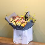 Un ramo de rosa bebé, lisianthus, Dancing Lady y otras flores.