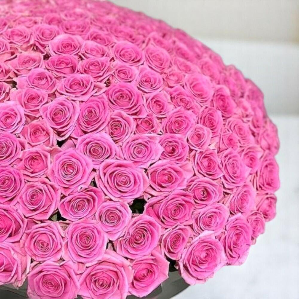 El Hama Bouquet es una obra floral audaz y lujosa, con 99 rosas vibrantes de color rosa oscuro hermosamente arregladas y envueltas en elegantes capas de rabink plateado. Rematado con dos cintas de raso rosa suave, este voluminoso ramo irradia feminidad, pasión y elegancia. Ideal para gestos románticos grandiosos, celebraciones importantes o para causar una impresión duradera, el Hama Bouquet habla por sí solo con su color, tamaño y diseño impresionante. Instrucciones de cuidado: Para mantener sus rosas frescas y llenas de vida, corte los tallos en un ángulo de 45 grados con un cuchillo afilado o tijeras de podar antes de colocarlas en un jarrón limpio lleno de agua fría. Renueve el agua a diario y recorte ligeramente los tallos para mantener la hidratación. Guarde el ramo en un lugar fresco y sombreado, alejado de la luz solar directa, de los aparatos de calefacción y de las zonas de cocina. Esto ayudará a preservar su color vibrante y su forma elegante durante el mayor tiempo posible.