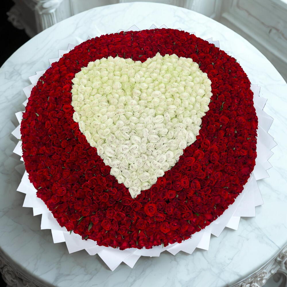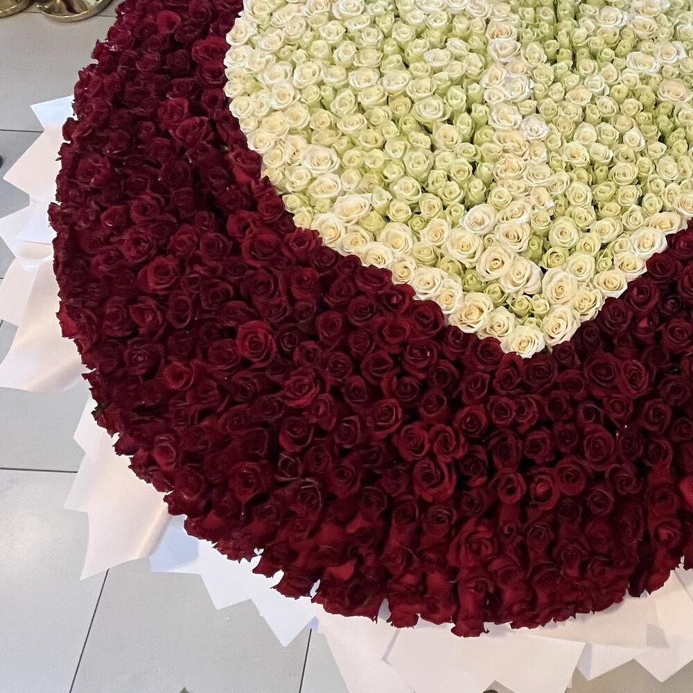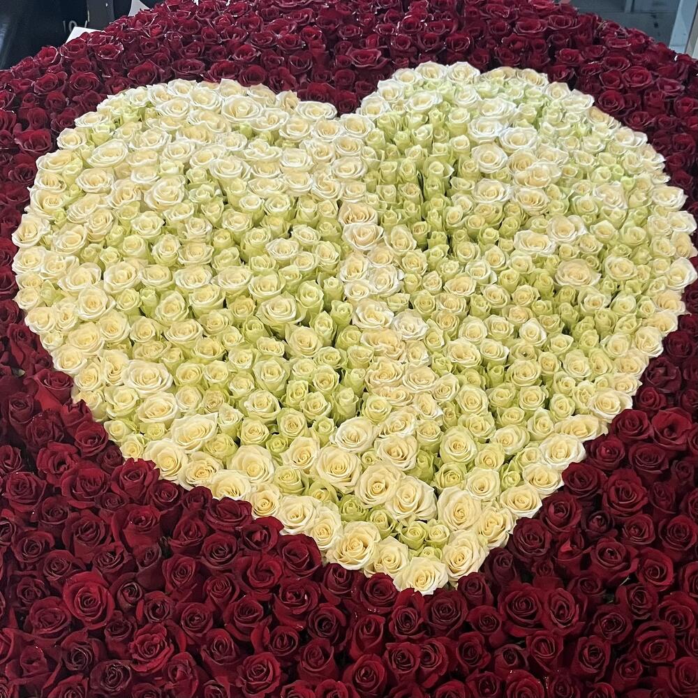 Red rose - 1200 ud. White rose - 601 ud. wrapping paper - 20 ud. espuma con forma de corazón - 1 ud.