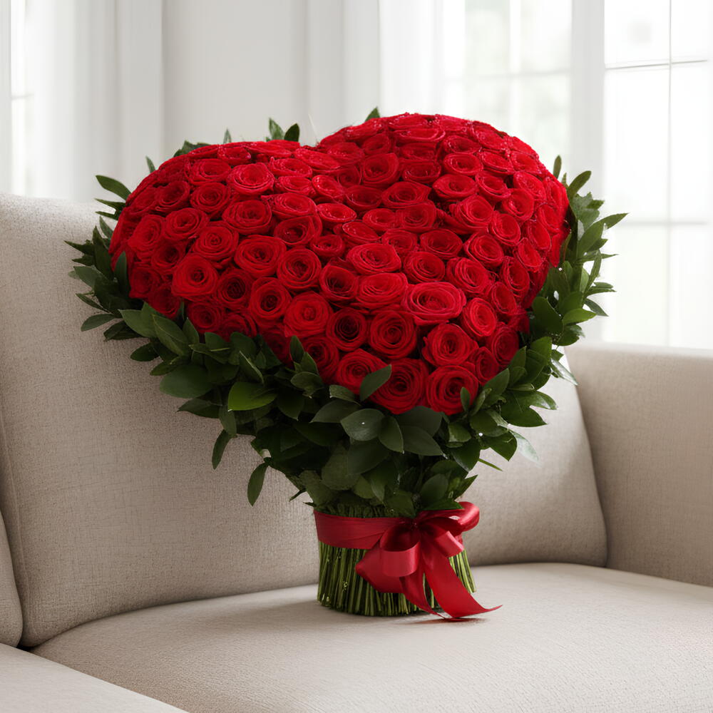Un símbolo duradero del amor, creado para llegar directamente al corazón. Heart of Passion presenta 101 rosas rojas de primera calidad, dispuestas meticulosamente en una impecable forma de corazón—cada flor representa devoción, deseo y profundidad de sentimiento. Perfecto para: Día de San Valentín Aniversarios Propuestas y hitos del amor Elegante, equilibrado y emocionalmente inconfundible—esto es el romance en su forma más pura. ❤️ Porque algunos momentos merecen un clásico.