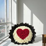 Expresa un amor profundo y pasión con nuestro impresionante ramo de flores blancas que presenta un corazón de flores rojas en su centro. Cada flor está seleccionada a mano y cuidadosamente arreglada para crear una exhibición impactante y romántica. Perfecto para aniversarios, el Día de San Valentín o gestos especiales, este ramo combina hermosamente la pureza, el amor y las emociones sinceras en cada flor.