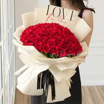 Rebosante de exuberantes rosas rojas aterciopeladas, elegantemente envueltas en suave tela marfil y rematadas con lazos de satén negros, el ramo I Love You Roses Bouquet es el máximo símbolo de pasión y devoción. Acompañado de una sentida tarjeta Love For You, este impresionante arreglo es perfecto para aniversarios, propuestas o cualquier momento que merezca un gesto romántico inolvidable. 🌹