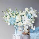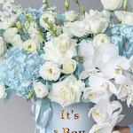 Caja "Es un Niño" Celebra la llegada de tu pequeño príncipe con nuestra Caja "Es un Niño", un lujoso arreglo de sombrerera en suaves tonos blancos y serenos azules. Rosas blancas, delicados ranúnculos y tiernos lisianthus simbolizan la inocencia y los nuevos comienzos, mientras que los elegantes tallos de orquídea, las etéreas plumas blancas, las exuberantes hortensias azules y las elegantes espuelas de caballero añaden profundidad y sofisticación. Diseñado en un elegante arreglo de sombrerera azul "Es un Niño", este arreglo es la manera perfecta de felicitar a los nuevos padres, alegrar las habitaciones del hospital o dar la bienvenida al bebé a casa con estilo. Detallista y refinado, aporta frescura, elegancia y alegría, creando un recuerdo que captura la belleza del momento más preciado de la vida. Ocasiones: Celebraciones por el nacimiento de un niño, visitas al hospital, regalos de bienvenida, felicitaciones a los padres, reuniones familiares y recuerdos de hitos importantes.