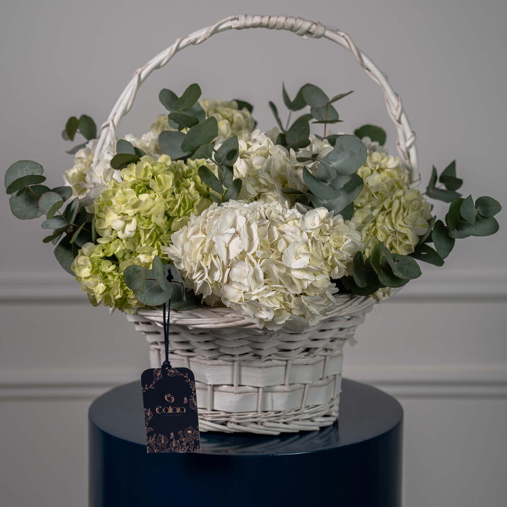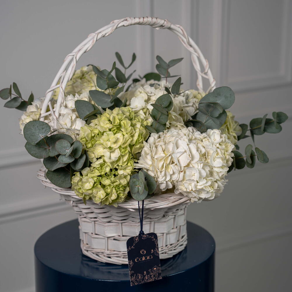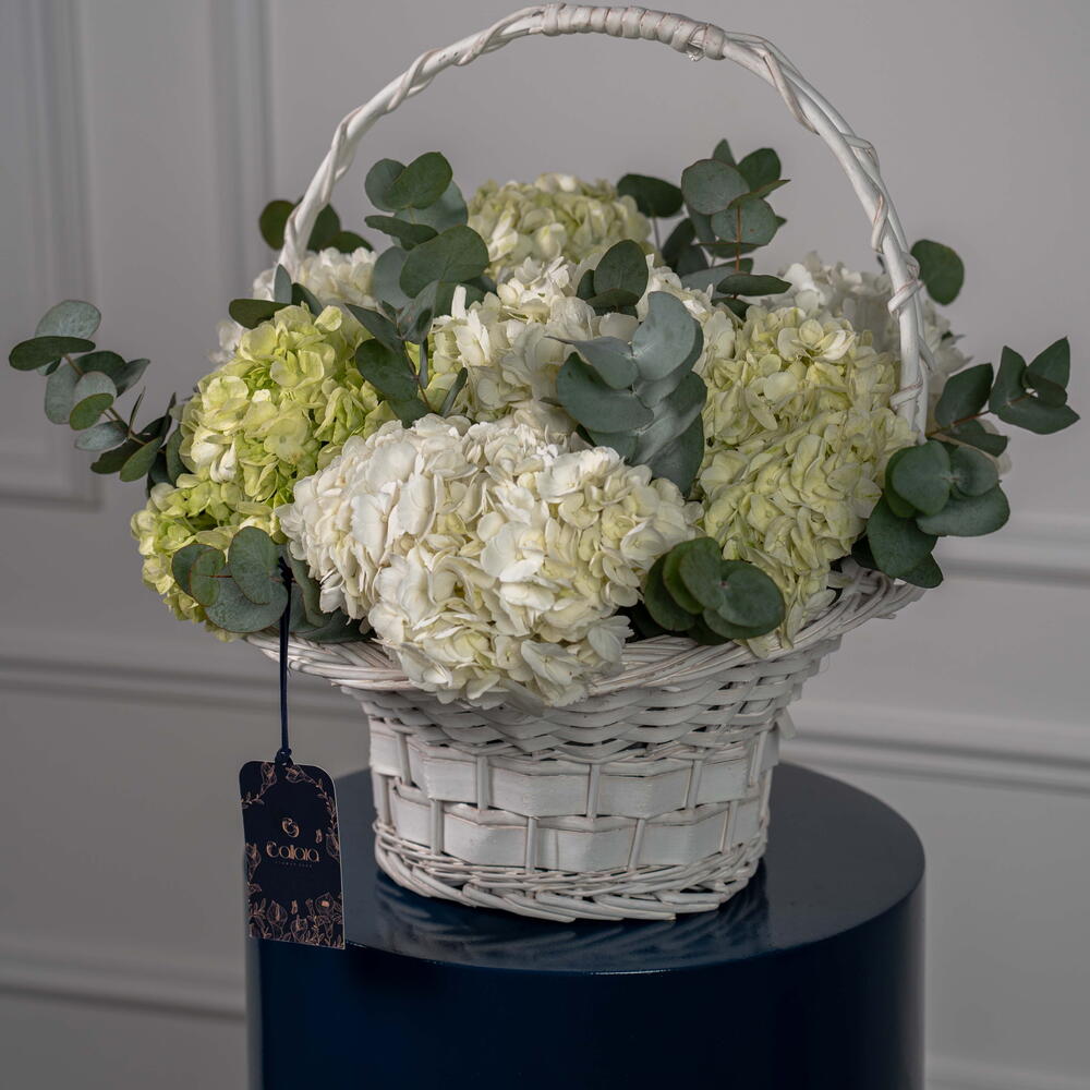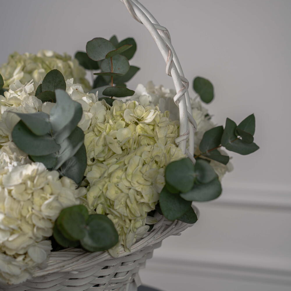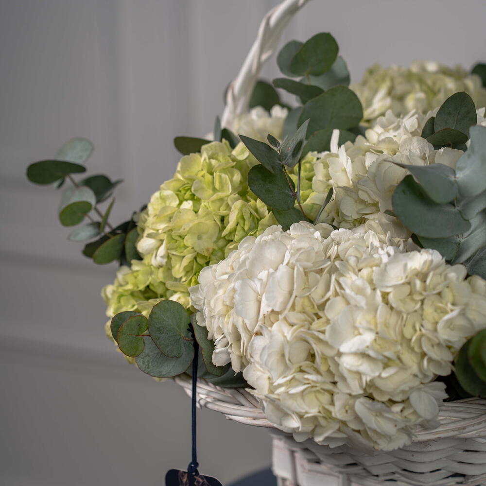 Eucalyptus - 4 ud. hydrangea white - 5 ud. hortensia verde lima - 3 ud.