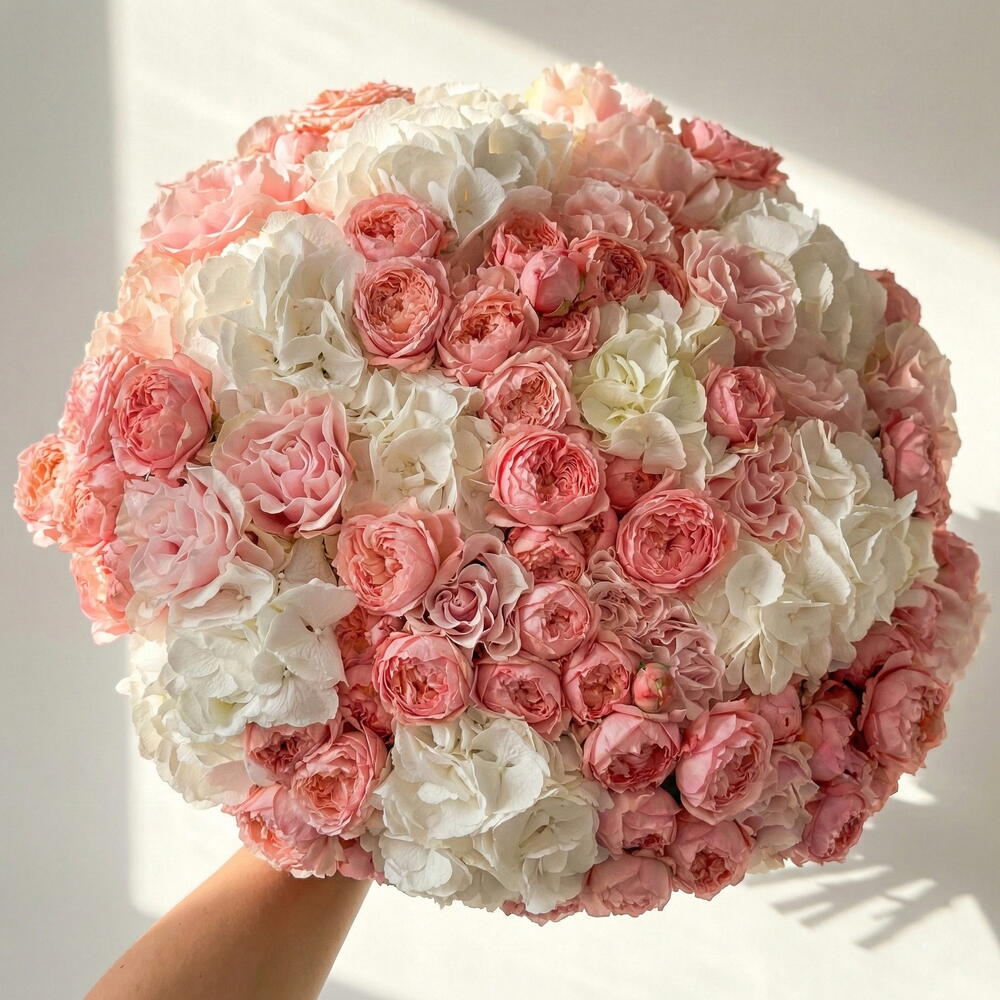 hydrangea white - 9 ud. rosa rosado mundial - 25 ud. julieta melocotón - 20 ud.
