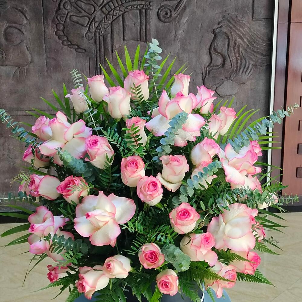 Este exquisito arreglo de 40 rosas jamelia color rosa, exhibido en una elegante caja negra con frondoso eucalipto y hojas de palma Areca como relleno, es una impresionante expresión de amor, gratitud y admiración. Las rosas jamelia color rosa son exuberantes y llenas, rodeadas de un abundante follaje que realza la delicada belleza de las flores. La caja negra aporta un toque de sofisticación, lo que hace que este arreglo sea perfecto para una variedad de ocasiones, desde gestos románticos hasta sinceras felicitaciones.