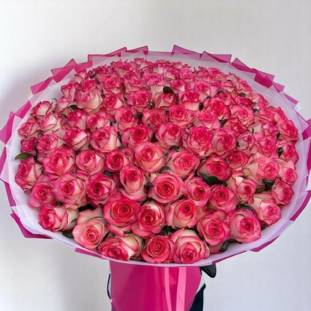 Ramo Grand Jankar con 90 rosas Jumilea – regalo floral de lujo envuelto en rosa y blanco