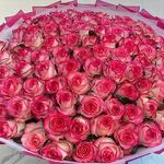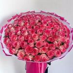 El Ramo Jankar es una obra maestra floral radiante y lujosa que presenta 90 impresionantes rosas Jumilea en tonos rosa vibrantes, conocidas por sus pétalos con degradado romántico y su aspecto exuberante. Envuelto en capas de papel de diseñador blanco nítido y rosa suave y atado con tres elegantes cintas de raso rosa, este ramo causa una impresión audaz e inolvidable. Perfecto para cumpleaños, aniversarios, declaraciones de amor o cualquier ocasión especial, este ramo de gran tamaño es un auténtico espectáculo tanto por su tamaño como por su belleza. Instrucciones de cuidado: Para mantener la frescura de su ramo, recorte cada tallo en un ángulo de 45 grados usando un cuchillo afilado o unas tijeras de podar antes de colocar las flores en un jarrón limpio lleno de agua fría. Cambie el agua diariamente y vuelva a cortar ligeramente los tallos para mantenerlos hidratados. Evite colocar el ramo a la luz directa del sol, cerca de fuentes de calor o en lugares con corrientes de aire o humos de cocina. Un ambiente fresco y sombreado ayudará a que sus rosas se mantengan vibrantes, llenas y frescas durante el mayor tiempo posible.