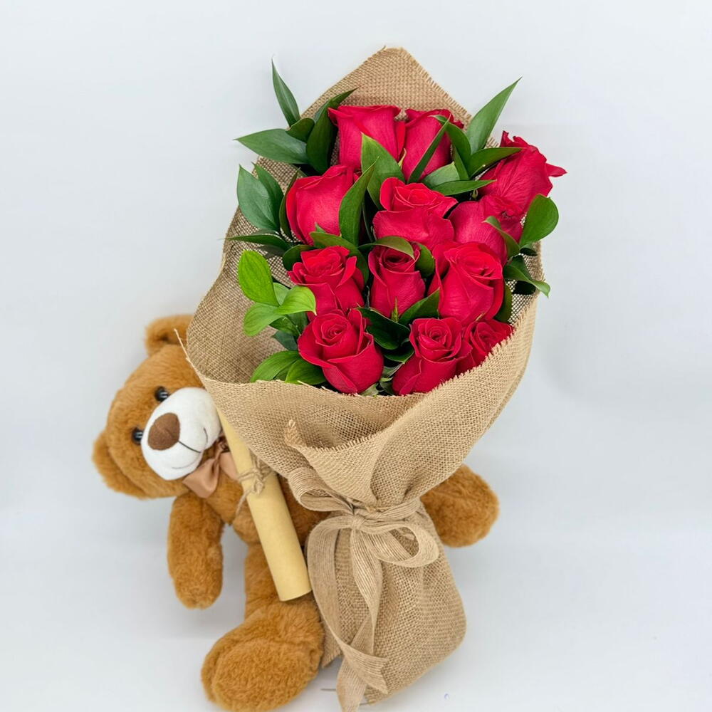 Teddy bear - 1 ud. red roses - 12 ud.