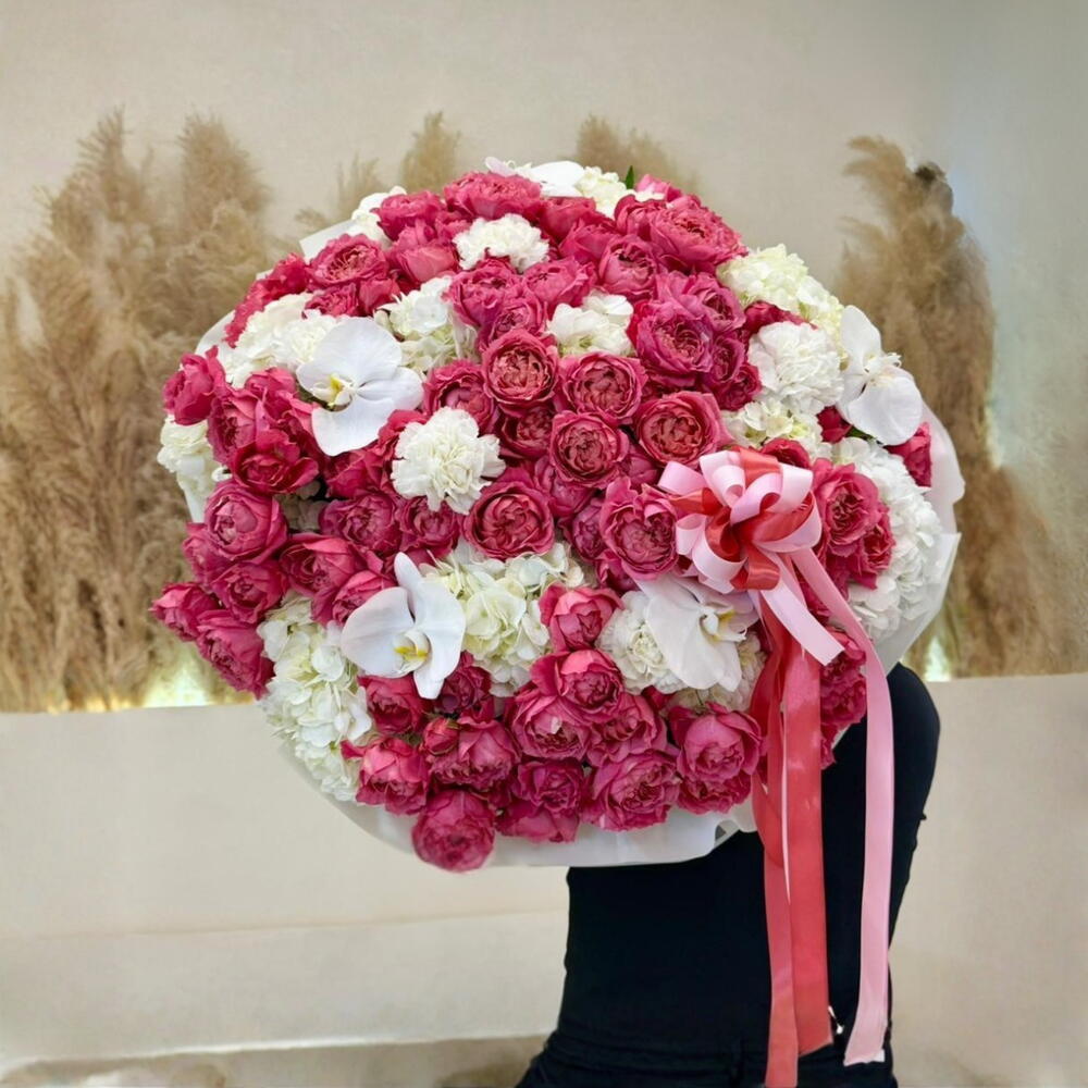Demuestra tu amor este Día de San Valentín con un impresionante ramo de 22 rosas Julieta de color rosa, complementado con hortensias blancas, claveles blancos y delicadas orquídeas Phalaenopsis. Este sofisticado arreglo combina romanticismo, elegancia y frescura—perfecto para expresar sentimientos sinceros a alguien especial.