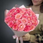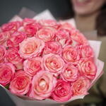 Sumérgete en la belleza de nuestro ramo, que presenta 25 exquisitas rosas de color rosa. Cada rosa cautiva con sus delicados pétalos y su elegante tonalidad rosada, creando una atmósfera de ternura y sofisticación. Arreglado con maestría y envuelto con elegancia, es un regalo deslumbrante que será atesorado.