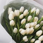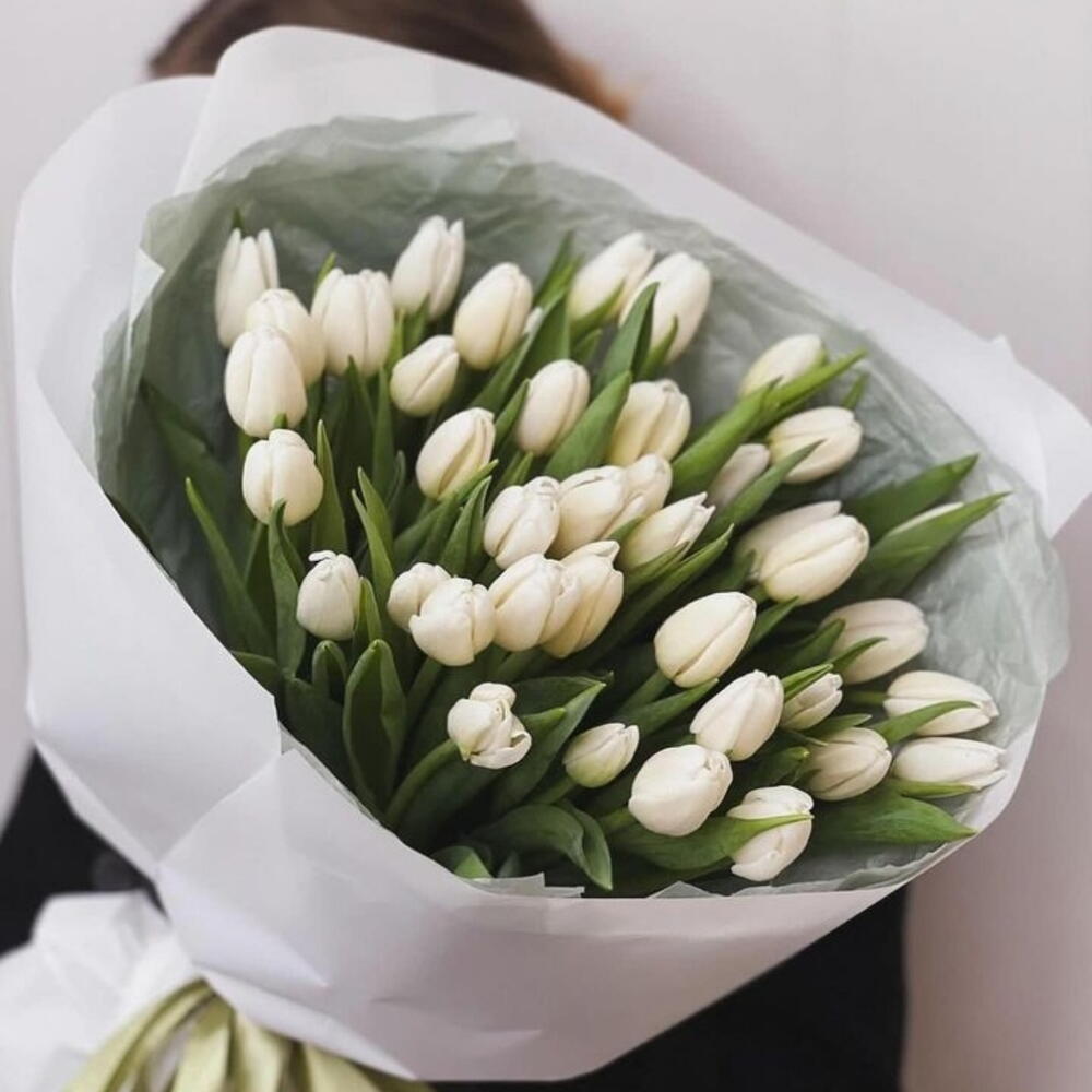 white tulips - 59 ud. rabink blanco - 6 ud. cinta podrida me - 2 ud.