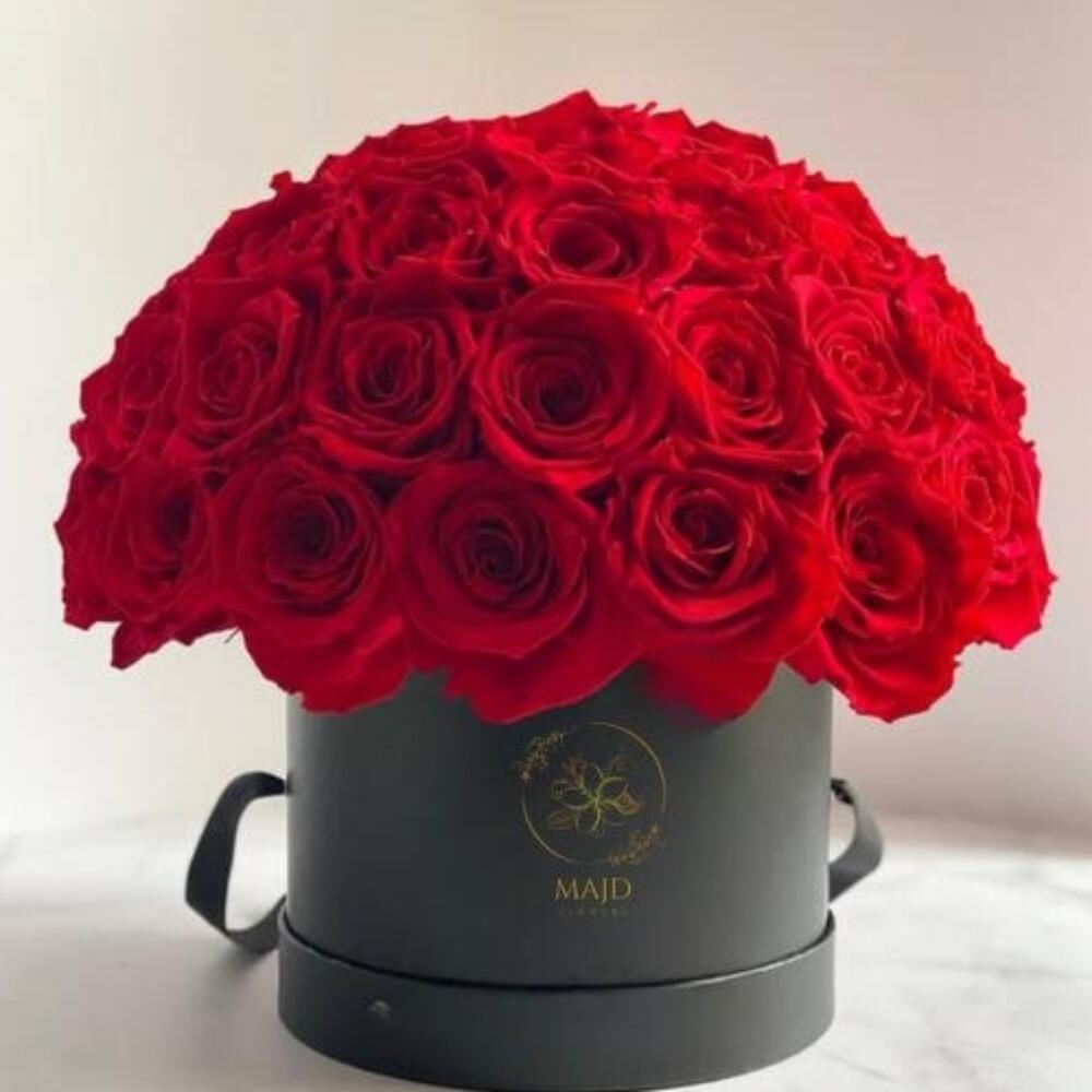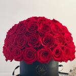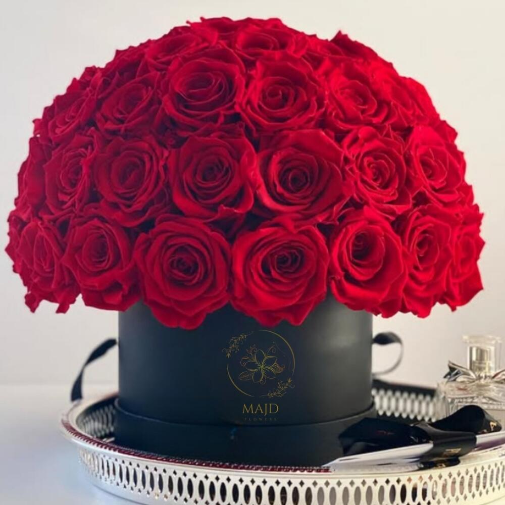La Dôme Rouge: para el amor más puro y sin complejos. No es solo un arreglo floral: es arquitectura en flor. Revestida de pétalos rojo pasión, esta cúpula se yergue como un amor que se niega a doblegarse. Atemporal. Feroz. Eterna.