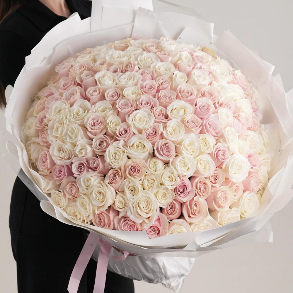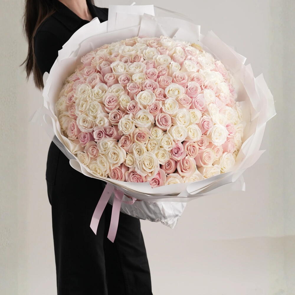 Ramo La Vie en Rose Una verdadera oda al romance — si el amor tuviera un color, florecería La Vie en Rose. Esta exquisita creación presenta 51 rosas ecuatorianas premium en color rosa y 50 en color blanco, formando una cúpula impresionante que transita con gracia de rubor a marfil. Cada rosa está seleccionada a mano por la simetría impecable de sus pétalos y su textura aterciopelada, creando un degradado suave y luminoso que se siente como entrar en un sueño. Inspirado en la atemporal elegancia francesa y en la belleza de ver la vida “a través de lentes color de rosa”, este ramo personifica la ternura, la feminidad y la devoción más pura. Es más que un arreglo floral — es una celebración del amor en su forma más elegante. ✨ Perfecto para: Gestos románticos — aniversarios, propuestas, Día de San Valentín Celebraciones del amor — bodas, compromisos, momentos significativos Regalos pensados para la familia o amigos queridos Decoración de lujo — para hogares, eventos o exhibiciones de boutique Una declaración inolvidable de afecto y sofisticación, La Vie en Rose transforma cada mirada en poesía — una obra maestra que susurra amor en cada matiz de rosa y blanco.