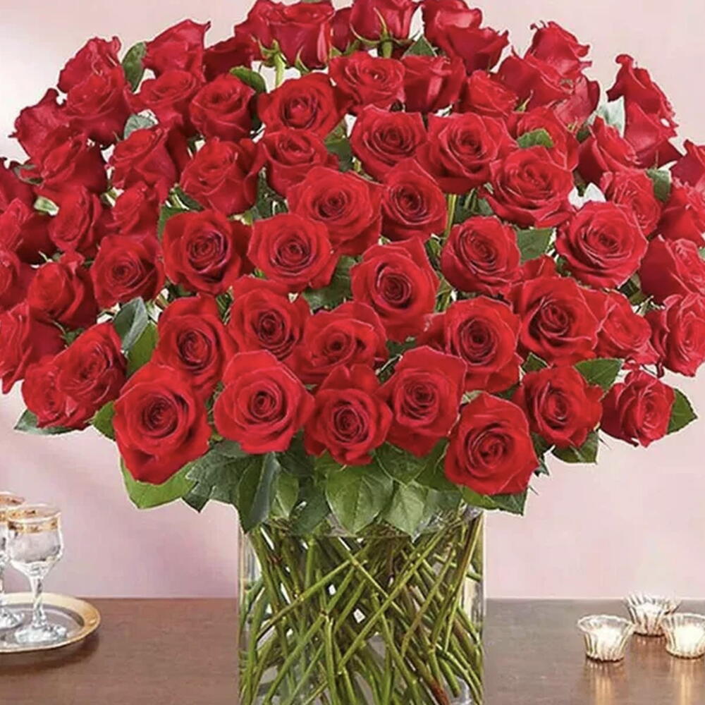 Un impresionante arreglo de 101 lujosas rosas rojas, cada flor simboliza el amor y la pasión. Artísticamente presentado en un jarrón de cristal transparente, este cautivador ramo irradia elegancia y romanticismo.