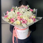 Statice - 5 ud. Hydrangea - 3 ud. Lisianthus - 10 ud. rose - 5 ud.
