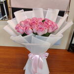 Presenting a beautiful mono bouquet, composed of 25 hand-picked, exquisite pink roses. Each delicate bloom is selected for its vibrant hue and tender petals, curating an arrangement that embodies both grace and romance. This bouquet is a perfect symbol of love, affection, and admiration, ideal for making any occasion extra special.