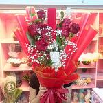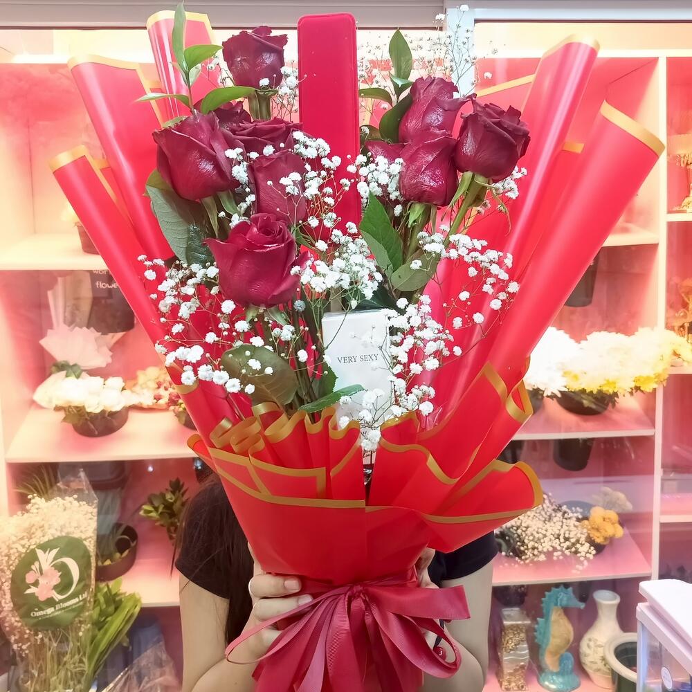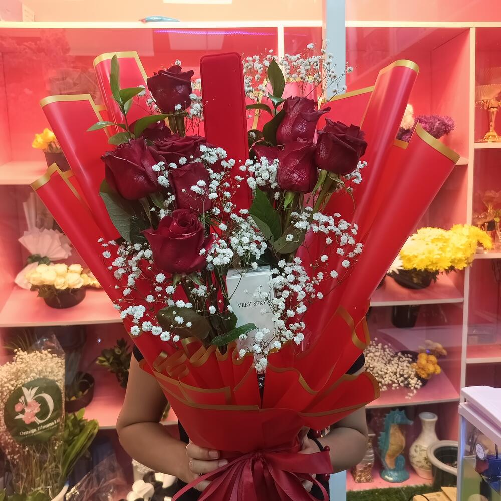 Este llamativo ramo monofloral desprende pasión y elegancia. El arreglo consta de 10 exuberantes rosas rojas, artísticamente dispuestas con un único tallo de gipsofila que contribuye a su delicado encanto. Acompañado de una cinta roja brillante y envuelto en seis piezas de elegante papel rojo, está asegurado en un conjunto de dos modernos soportes acrílicos para regalo. Ten en cuenta que cualquier regalo adicional mostrado en las imágenes es solo de referencia y no está incluido en el conjunto. Abre tu corazón con este asombroso ramo monofloral.