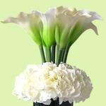 jarrón de cristal - 1 ud. white hydrangea - 4 ud. lirios de cala - 10 ud.