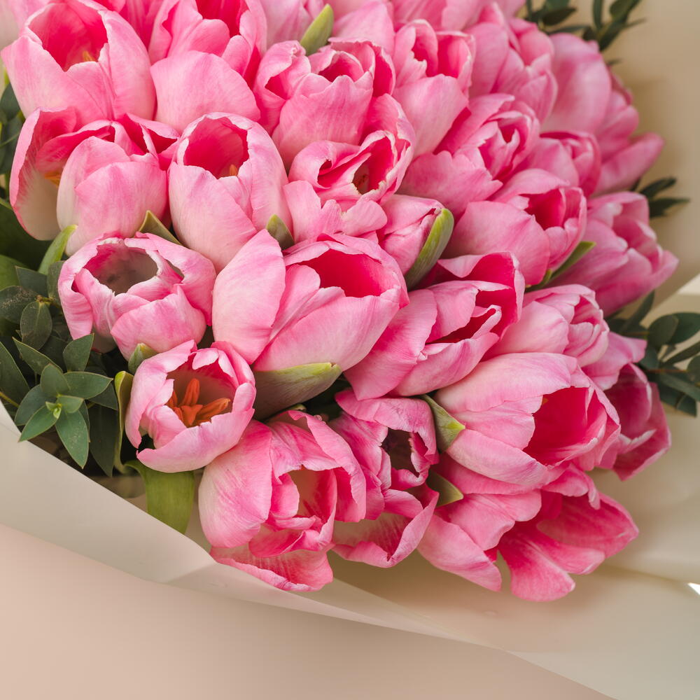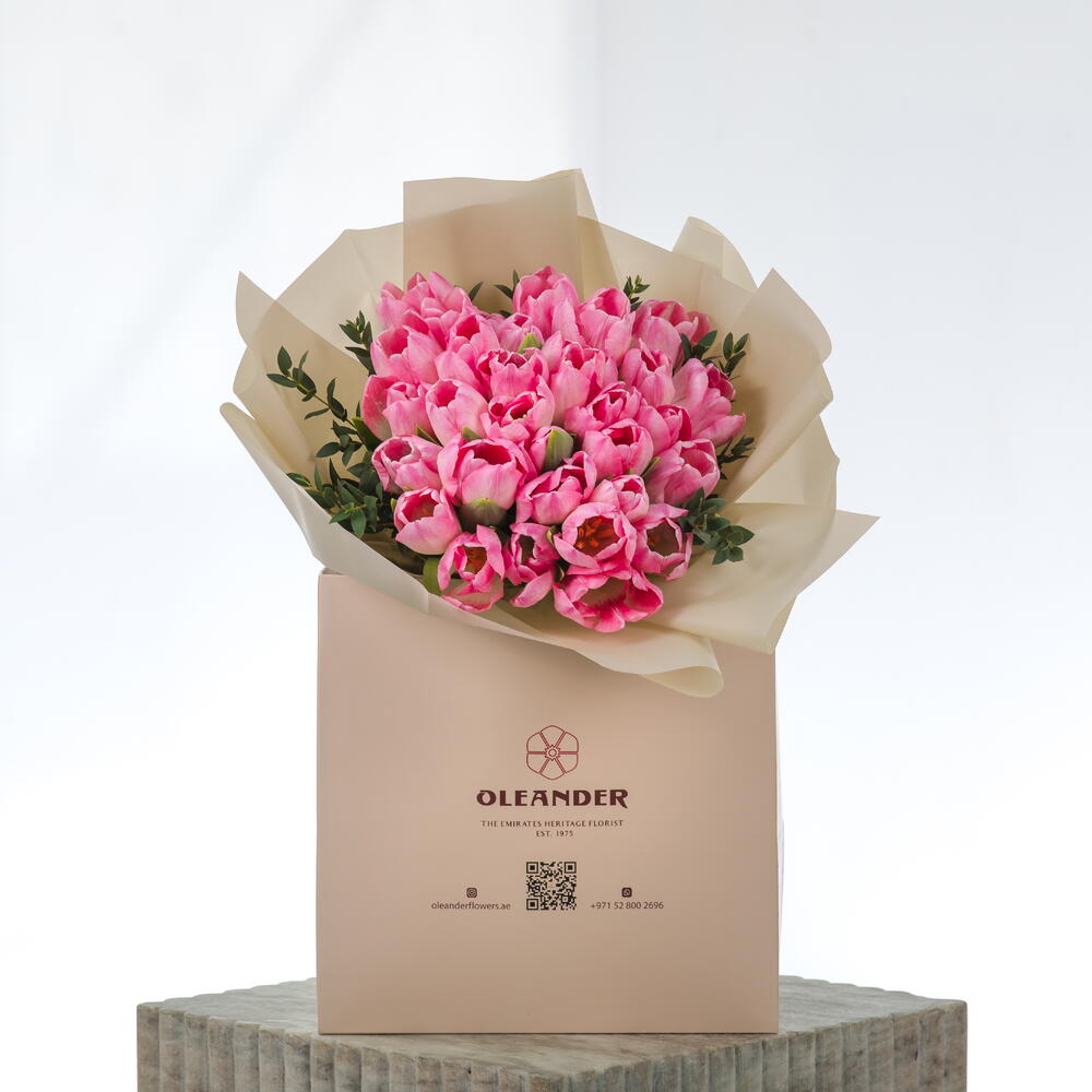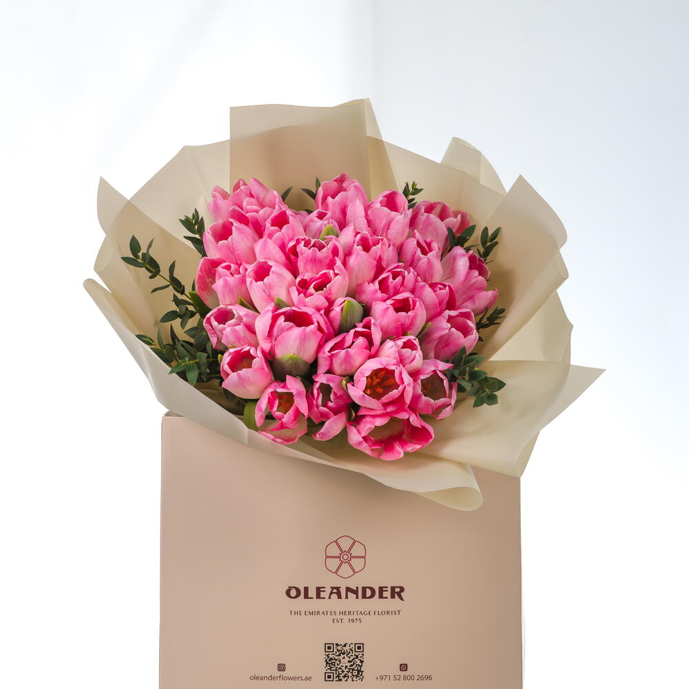 A timeless bouquet of pristine PINK tulips—gracefully arranged in a classic style, embodying simplicity, purity, and understated elegance.