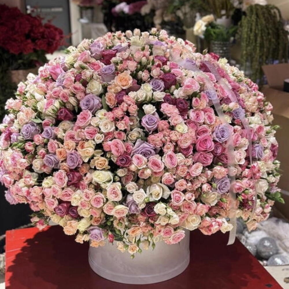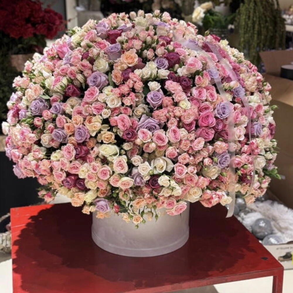 Una magnífica cesta de regalo de lujo llena de una abundante mezcla de rosas de jardín y rosas en spray en delicados tonos pastel y románticos. Esta voluminosa composición está elaborada con flores frescas cuidadosamente seleccionadas, armoniosamente dispuestas en una gran cesta de mimbre premium para crear una obra floral impresionante.
