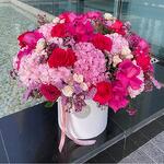 Magenta | Arreglo en caja | Hortensias rosas | Rosas fucsia | Mini rosas
