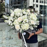 Delight in this breathtaking display of Flowers in a Box, a stunning assembly of 10 alluring Statice, 5 aromatic Eucalyptus, 5 soft Hydrangea, 10 enchanting Lisianthus, and 5 exquisite roses of the Ohara variety. Each bloom has been chosen with great care, offering a beautiful colour palette and a symphony of fragrance. An epitome of natural beauty and elegance, this graceful collection makes a perfect gift for every occasion or a sophisticated decor piece for your own home.