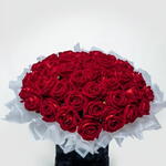 ¡Este es el regalo VIP definitivo para cuando quieres que este San Valentín sea un éxito! Con una enorme y exuberante cúpula de 35 rosas rojas premium, este arreglo está diseñado para llamar la atención y dominar la sala. Las flores están elegantemente envueltas en un elegante papel de seda blanco y alojadas en una lujosa sombrerera con textura de terciopelo negro, para darle ese toque perfecto de sofisticación moderna. Es la estrella de los regalos florales, perfecto para aniversarios dignos de alfombra roja o grandes detalles románticos.
