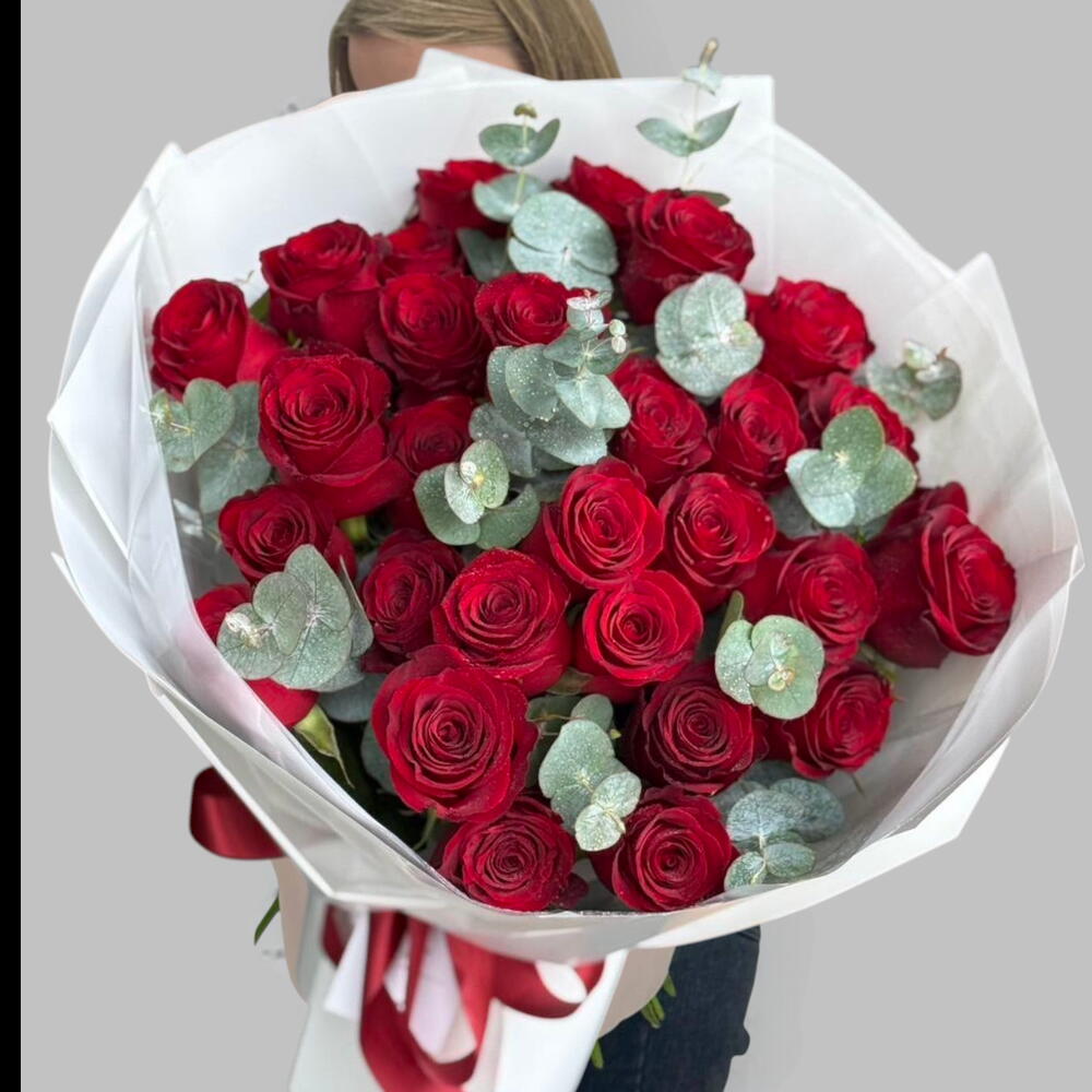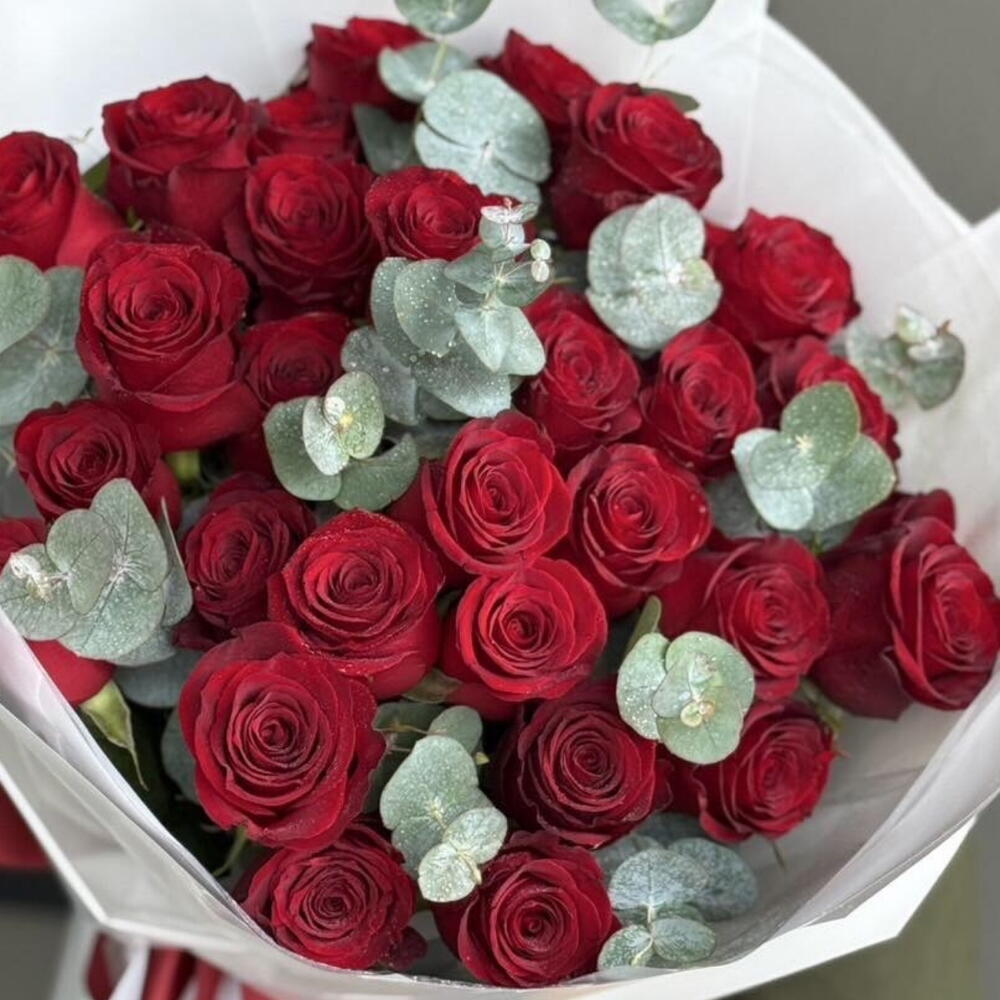 Red rose - 51 ud. Eucalyptus - 10 ud.