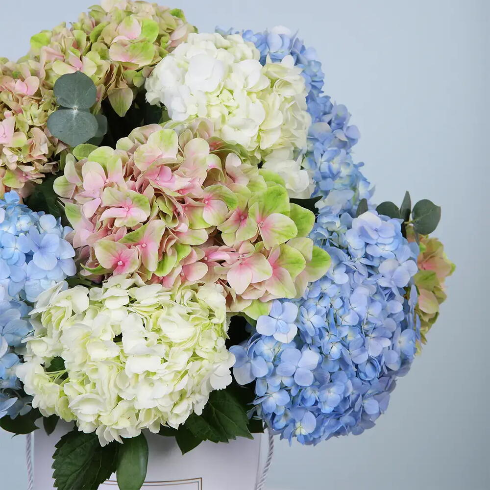Box - 1 ud. blue hydrangea - 5 ud. white hydrangea - 5 ud. hortensia rosa - 5 ud.