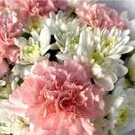Ramo de crisantemos blancos y claveles rosas
