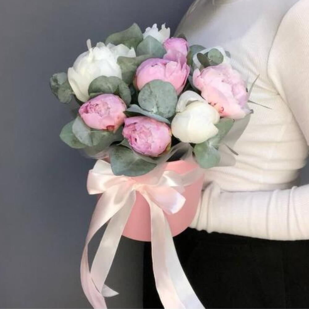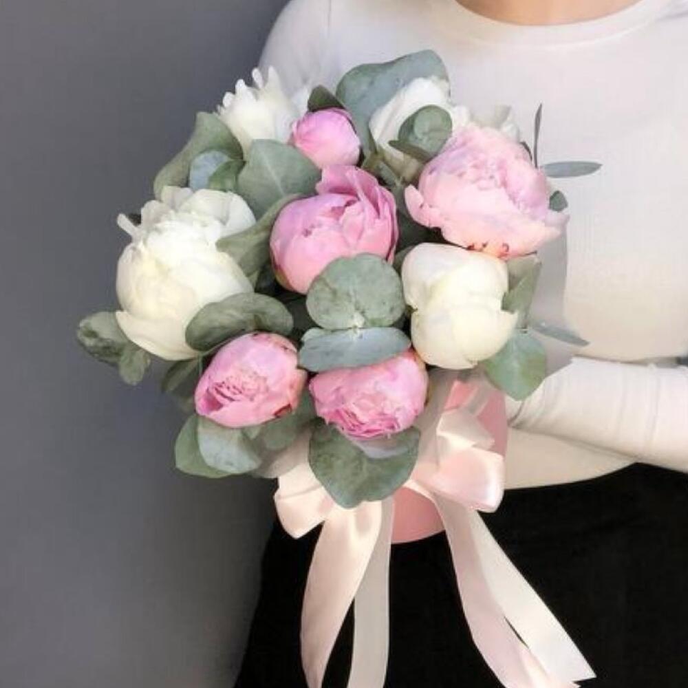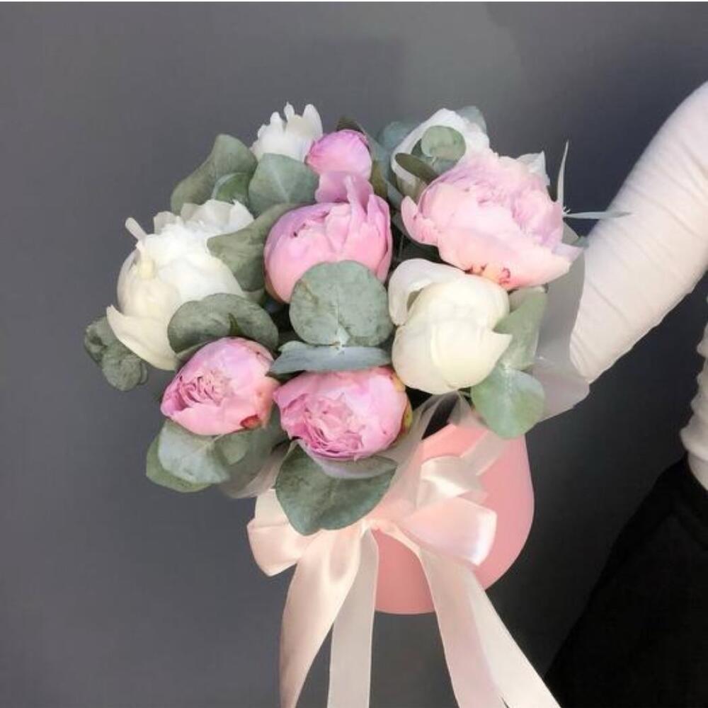 eucalyptus leaves - 3 ud. peonía rosa - 6 ud. peonía blanca - 3 ud.