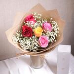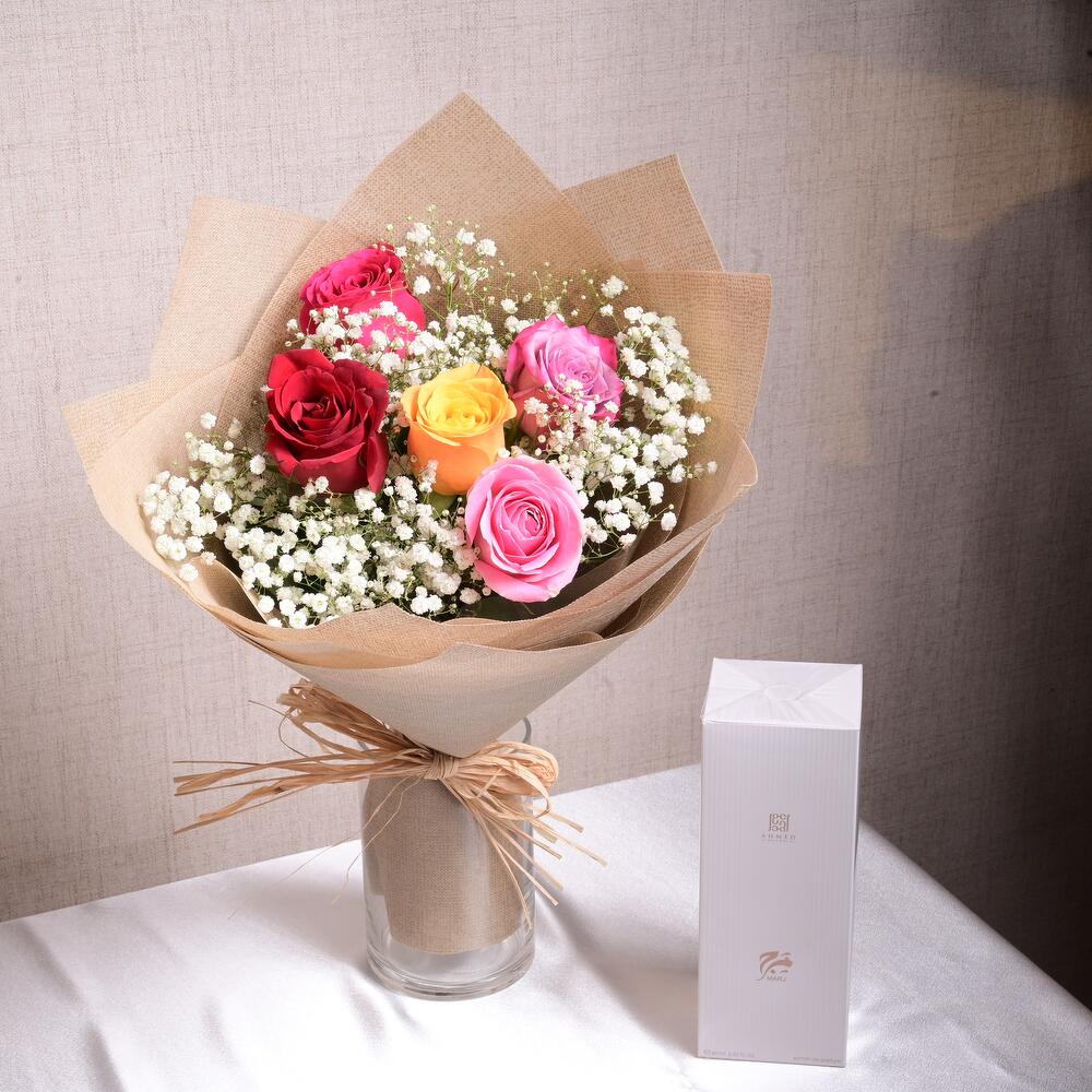 Ramo de 5 rosas de colores mixtos - 1 ud. marj perfume - 1 ud.