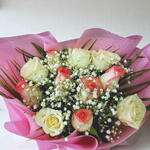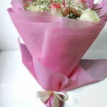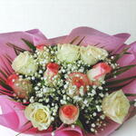 Pink rose - 6 ud. White rose - 5 ud. Gypsophila - 6 ud.