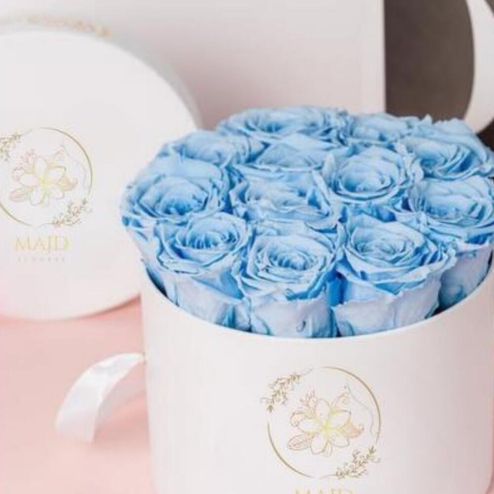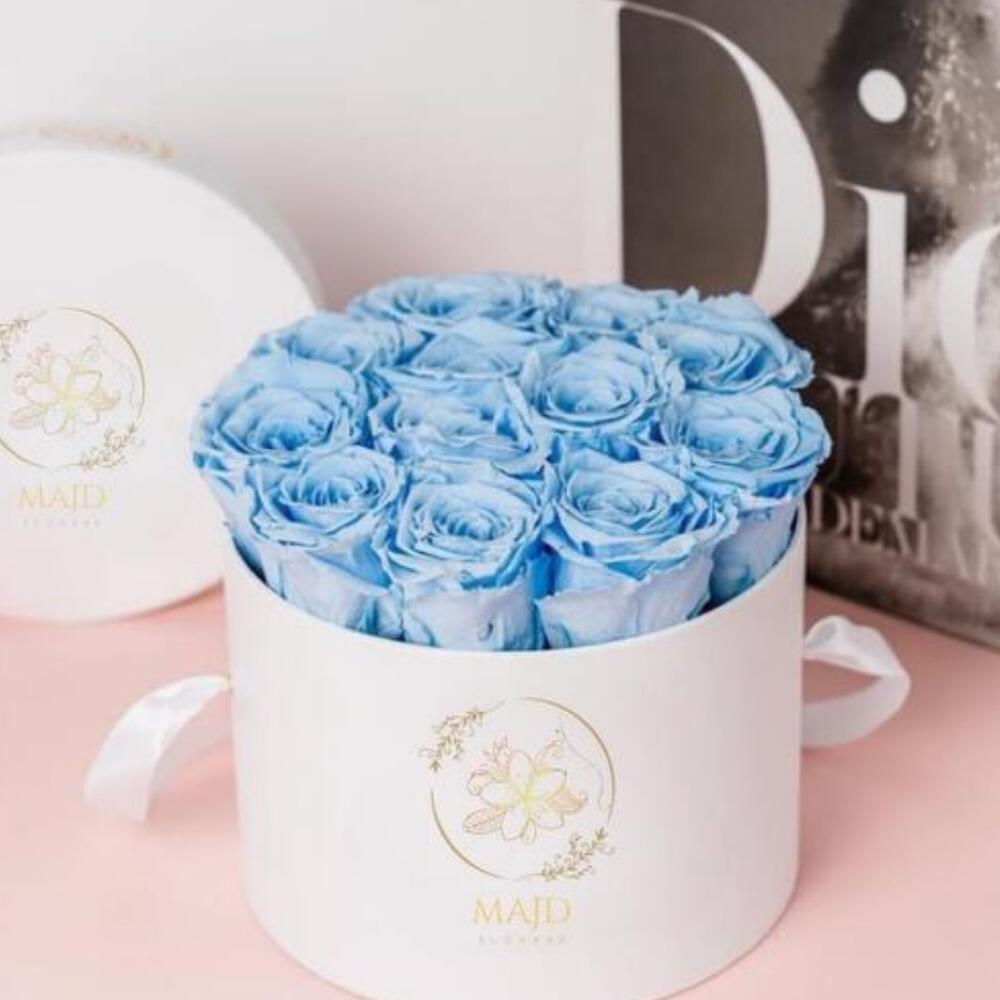caja redonda blanca - 1 ud. rosas azules - 13 ud.