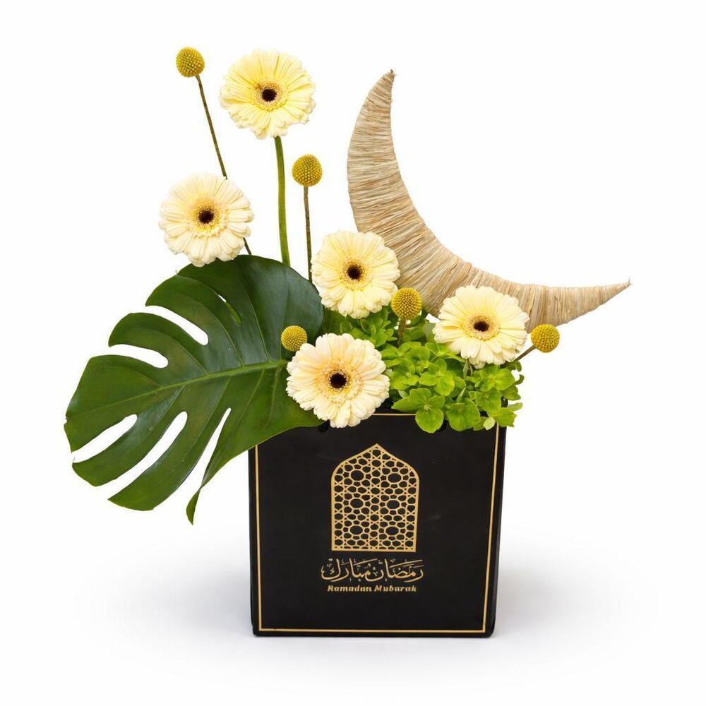Gerbera - 5 ud. hortensia verde - 1 ud. craspedia - 5 ud. hojas de monstruo - 1 ud. rogar - 1 ud.