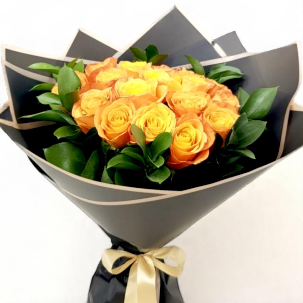 Elegante y alegre, este ramo de brillantes rosas naranjas está diseñado para llevar un toque de sol al día de cualquiera. El fresco follaje verde complementa perfectamente las vibrantes flores, haciendo de este arreglo una opción sofisticada pero alegre para celebraciones o saludos cálidos. Para mantener la frescura del ramo, colócalo inmediatamente en agua limpia. Cambia el agua diariamente, recorta los tallos en ángulo cada 2–3 días y mantén el ramo alejado de la luz solar directa y de corrientes de aire.
