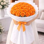 24 rosas naranjas frescas presentadas elegantemente en un envoltorio blanco de primera calidad con una hermosa cinta. Este vibrante ramo irradia energía, calidez y audacia, lo que lo hace perfecto para celebraciones, logros, hitos y regalos motivacionales. Un impresionante arreglo floral que trae alegría a cualquier ocasión.