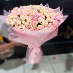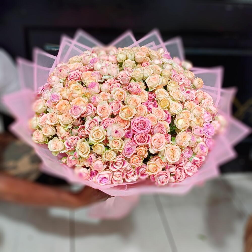 Pastel Harmony: Bouquet of 26 Pink and 25 Peach Spray Roses